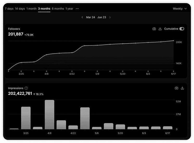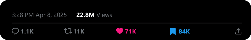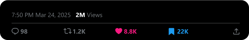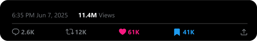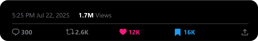 Nikola is the best virality and growth specialist I’ve ever worked with—trustworthy, dedicated, and truly irreplaceable. In one year, he helped grow my X account to 200K followers and over half a billion engagements, positioning my brand as a leader in health. He’s a forward-thinking creator who blends systems with creativity to craft unmissable content. If you want a master of his craft and a high-performing partner, Nikola is the one.